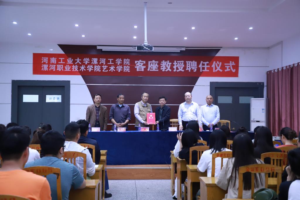 5月15日上午,学校客座教授聘任仪式在美术馆报告厅举行。中国美术学院教授、硕士生导师连放,中国美术学院教授、漯河职业技术学院客座教授朱辛伟,副校长王变奇、教务处处长贾新政、人事处处长杨曦及艺术学院师生百余人参加。聘任仪式由艺术学院院长王群星主持。