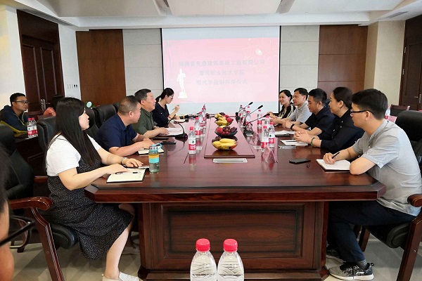 5月24日下午,漯河职业技术学院2018级建筑工程技术现代学徒制班拜师仪式在河南省昊鼎建筑基础工程有限公司举行。河南省建设教育协会秘书长樊军、开发部主任陈晓燕、副主任谷丰;昊鼎公司副总郑宏伟、工程部副经理王素勤、项目经理方浩杰;学校副校长王变奇、建筑工程学院院长赵冬梅、副院长姚艳红、专业主任张彦鸽及周成科,以及2018级建筑工程技术专业9名同学及4位师傅代表参加了拜师仪式。仪式由郑宏伟主持。